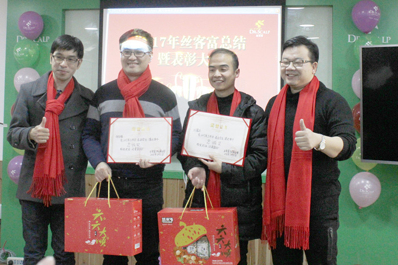 2018年2月5日,Dr.Scalp丝客富公司召开2017年度总结暨表彰大会,回顾总结2017年工作情况,部署2018年重点工作,表彰先进员工。对于做出杰出贡献的人员,赠送荣誉称号等方式以表达尊敬之情;对杰出人员来说,这是最为独特的嘉奖。